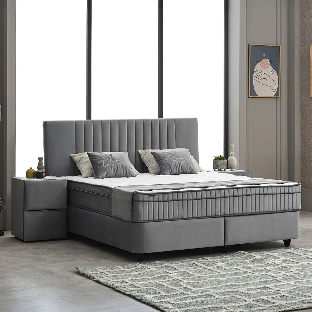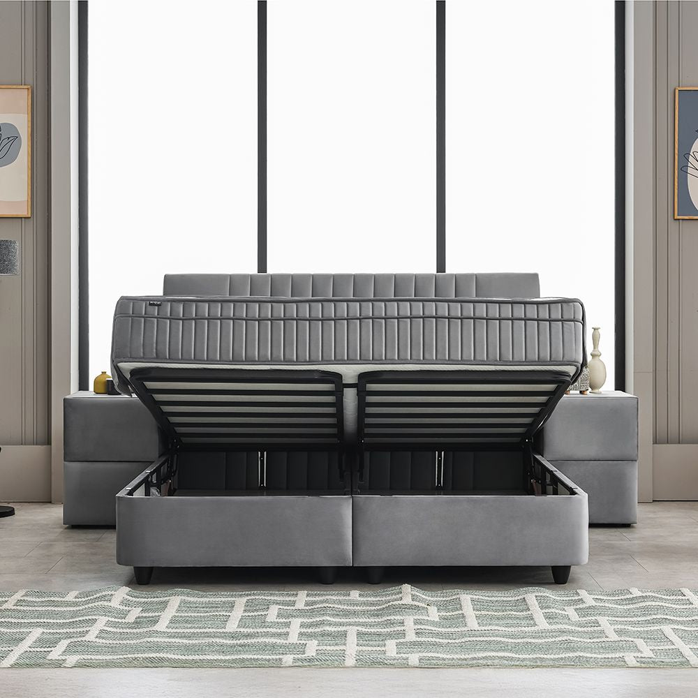 CLARA Boxspringbett Stauraum Bettkasten Samt Stoff Velours Grau Boxbett von ABC Bedding